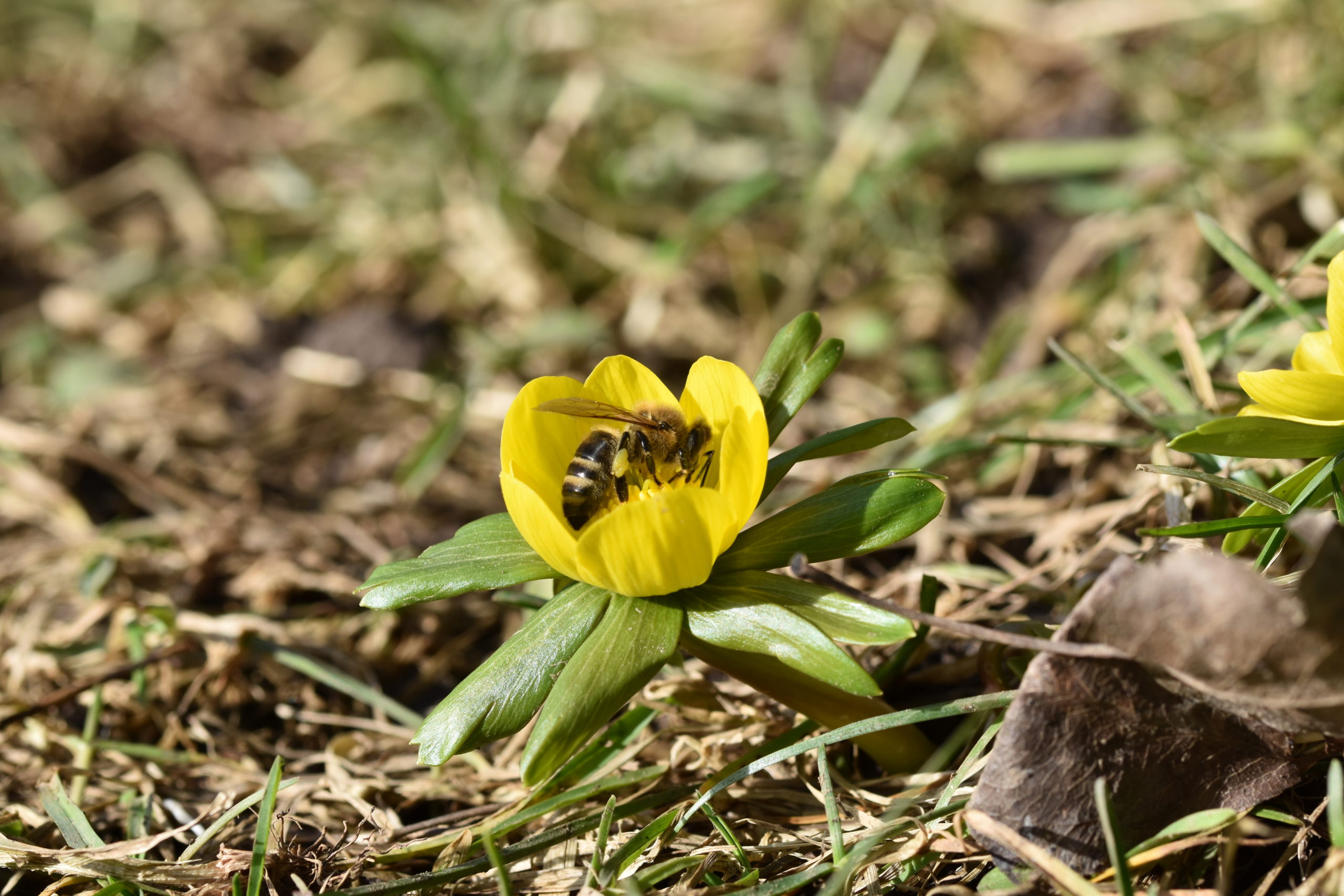 Honigbiene auf Winterling (Eranthis hyemalis)