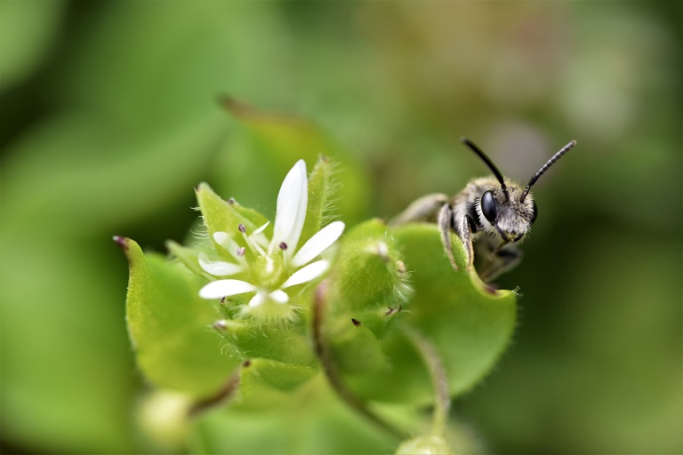 Vogelmiere - Darstellung der Blüte mit Wildbiene