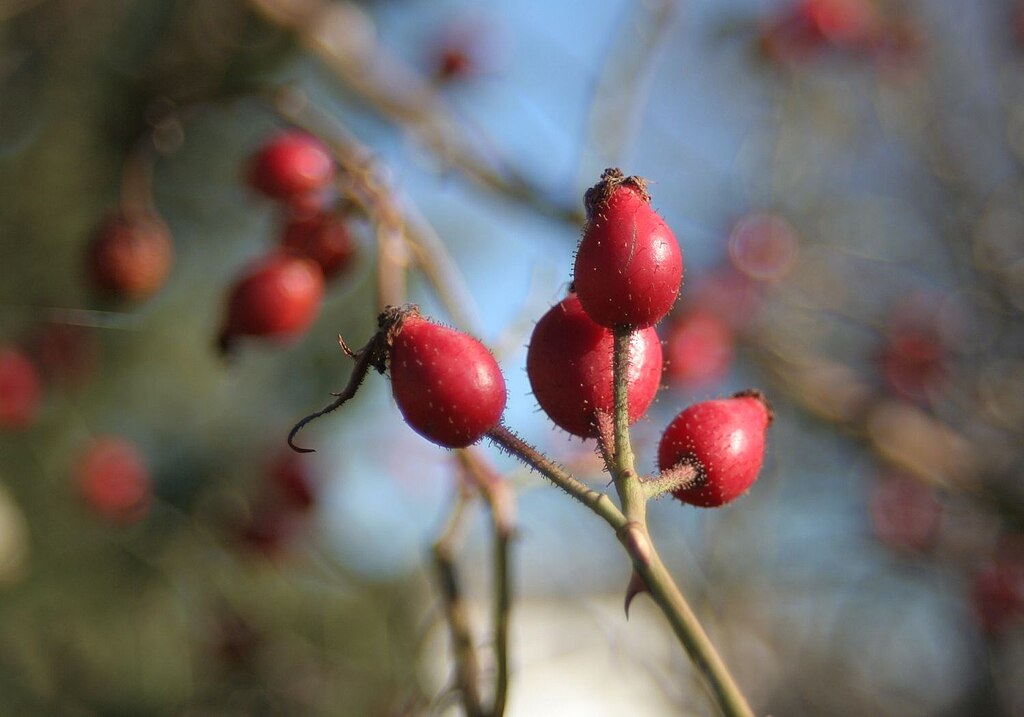 Die Hagebutten dienen im Winter zahlreichen Vogelarten als wichtige Nahrungsquelle.